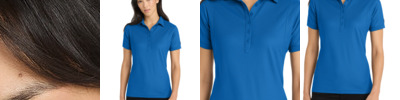 Lightweight and breathable, this moisture-wicking shirt has a pleasing drape, subtle jacquard texture and an open placket for feminine style.